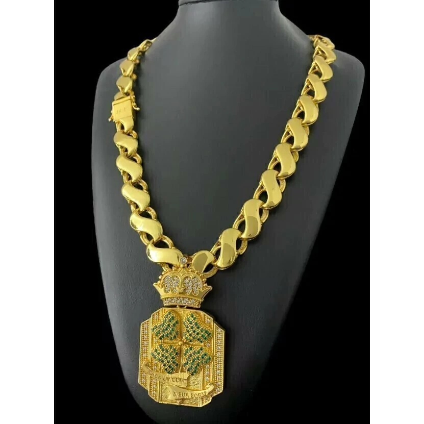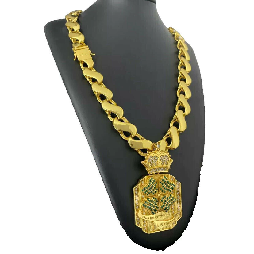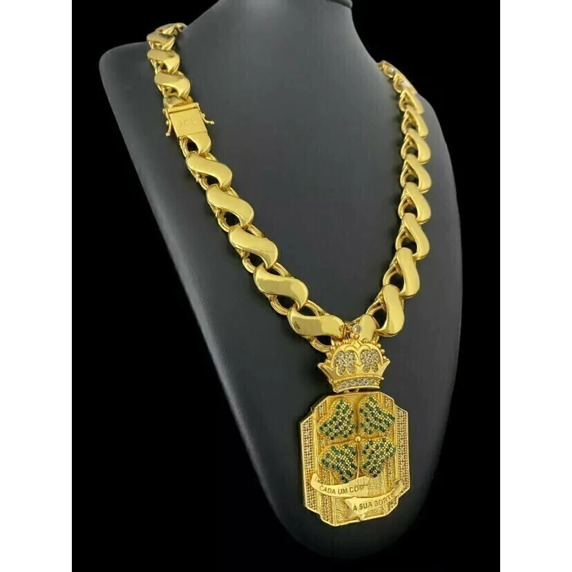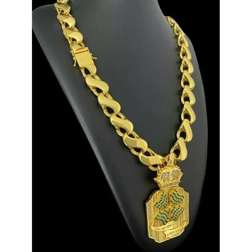 Cordão Friso s 16mm + Pingente Trevo - Banhado a Ouro 18k