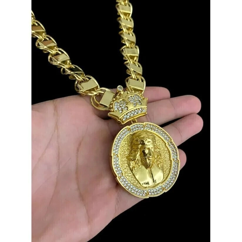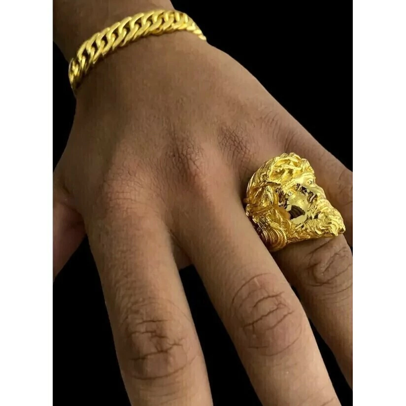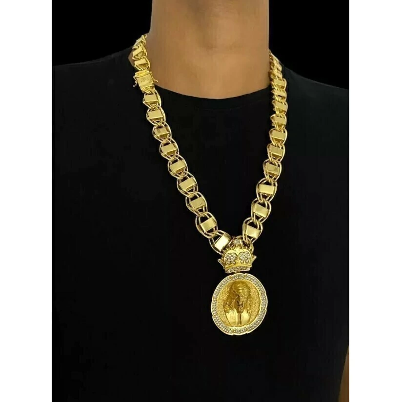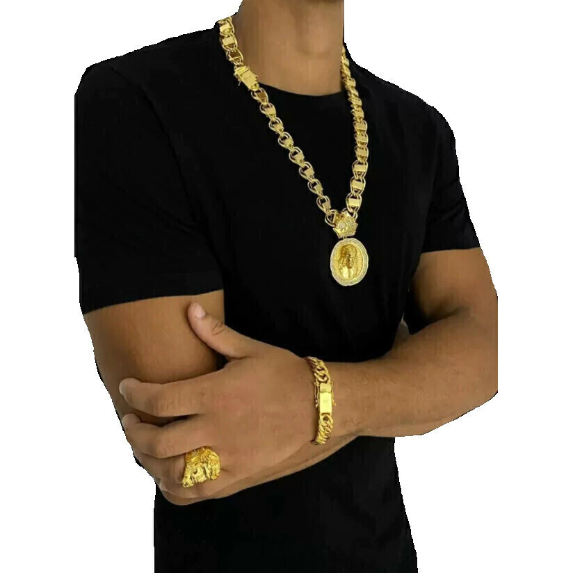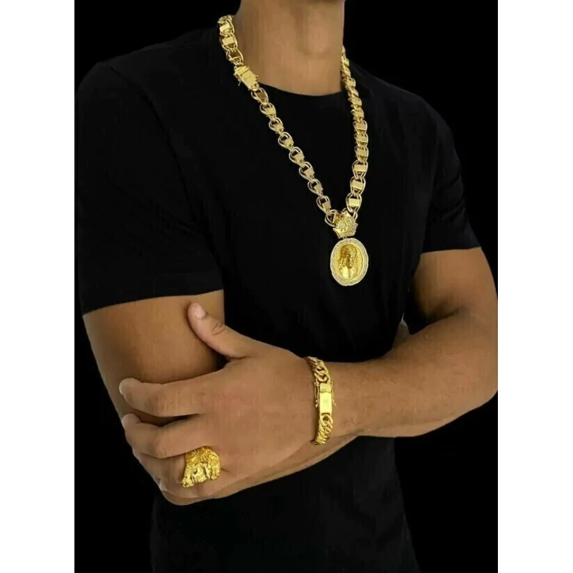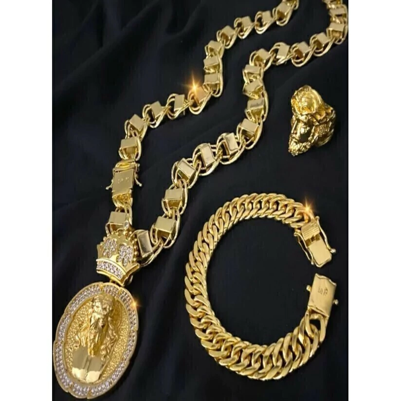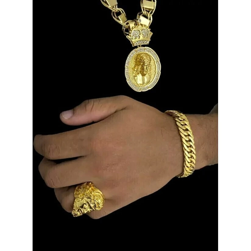 Kit Cordão Dubai 17mm + Pulseira Grumet 13mm + Anel + Pingente Jesus - Banhado a Ouro 18k