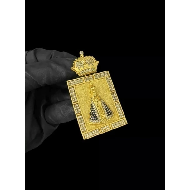 Pingente Coroa Nossa Senhora Quadrado (g) - Banhado a Ouro