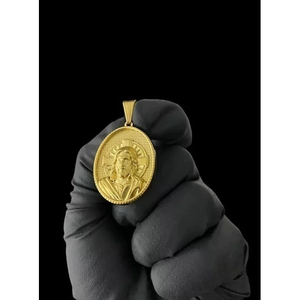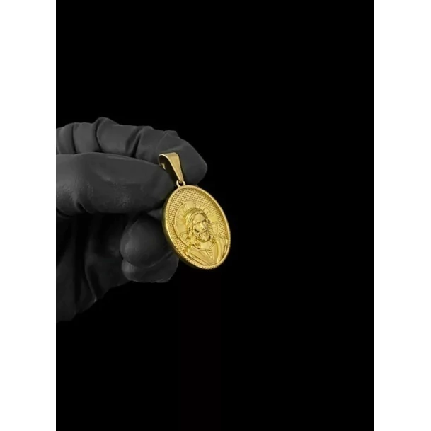 Pingente Jesus Oval - Banhado a Ouro 18k