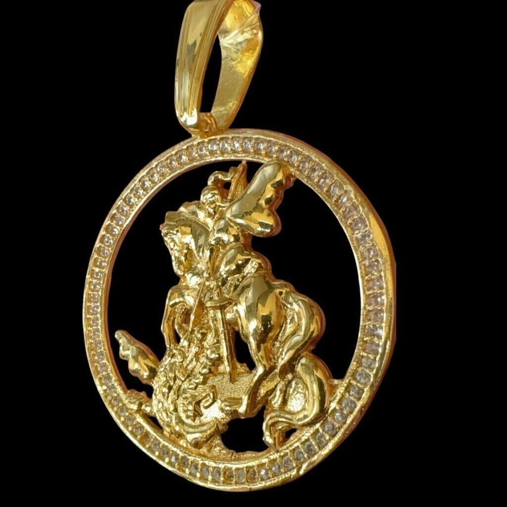 Pingente São Jorge Redondo - Banhado a ouro 18k