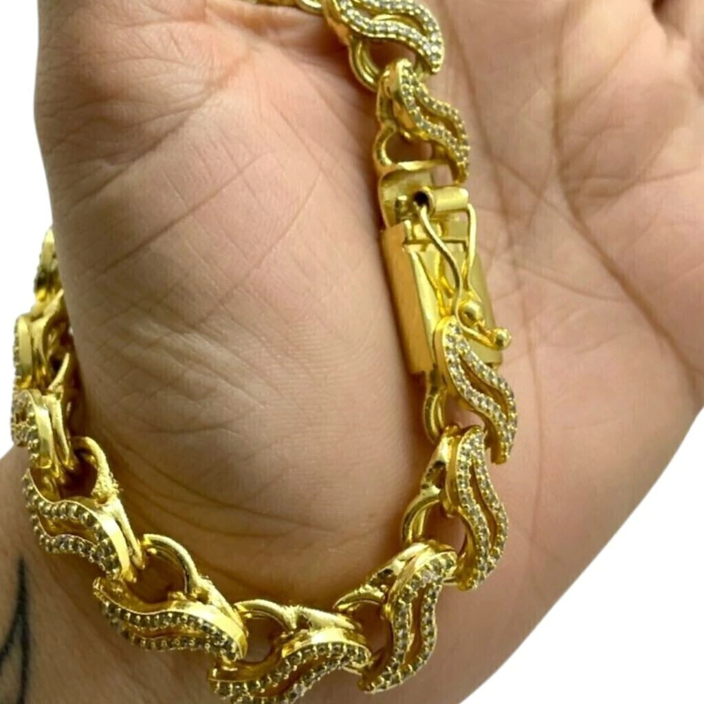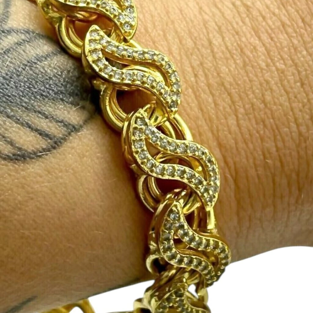 Pulseira Friso S 12mm Cravejada Pedras Brilhantes Ouro 18K